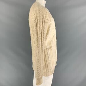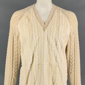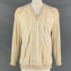 Fall Winter 2011 Size XL Cream Cable Knit Wool / Cashmere V-Neck Sweater