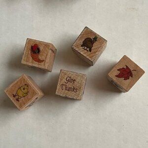 Fall Wooden Rubber Stamp Give Thanks Maple Leaf Turkey Bounty Harvent Chick 3/4