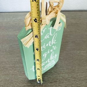 NWT Cute “Eat Drink and Give Thanks” Rustic wooden teal aqua blue and white glitter painted hall Thanksgiving pumpkin sign decor with raffia bow.