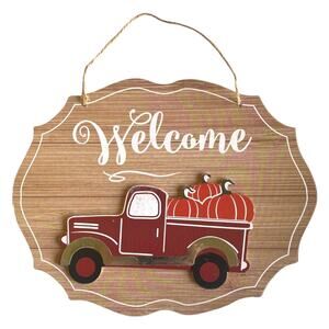 ⢠1 Wood-look āWelcomeā Sign with Red Truck & Pumpkins (approx. 8ā)