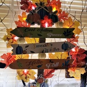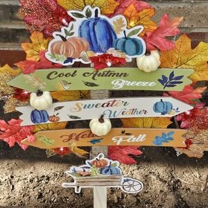 Cute handmade fall yard sign with battery-operated lights. Adorable addition to and fall decor.