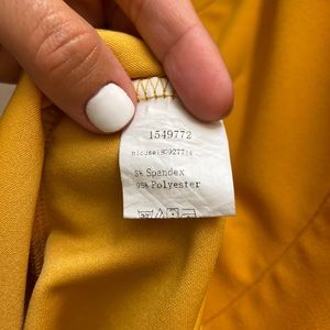 Peplum long sleeve, dress top, great with pants or skirt. Call must have color. Zips in the back, it’s mustard color.