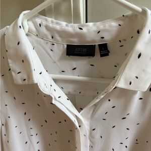 Stylish blouse bundle. All size large except tan sweater with sheer sleeves is XL. Dress up your fall wardrobe with these comfortable tops.