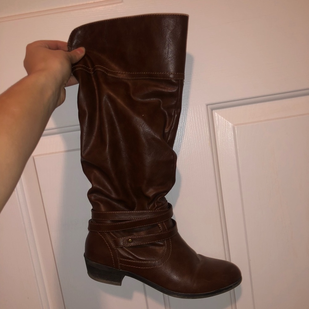 Brown faux leather boots