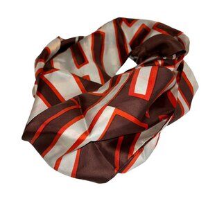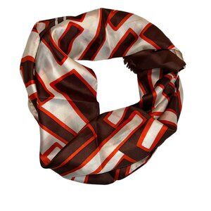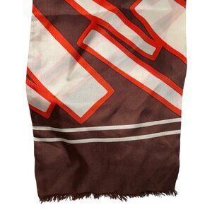 Fall brown Orange vintage 100% SILK fringe trim 60s mod print scarf ASNEW