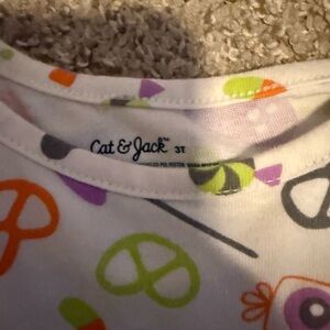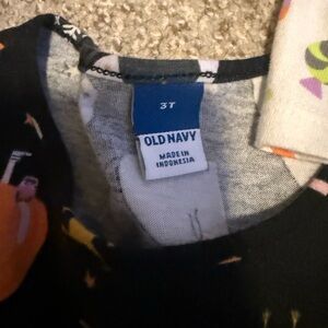 Adorable kids' dress with playful patterns and a cozy pumpkin-themed sweatshirt. Perfect for fun outings. Little Co, Old Navy, Cat and Jack.