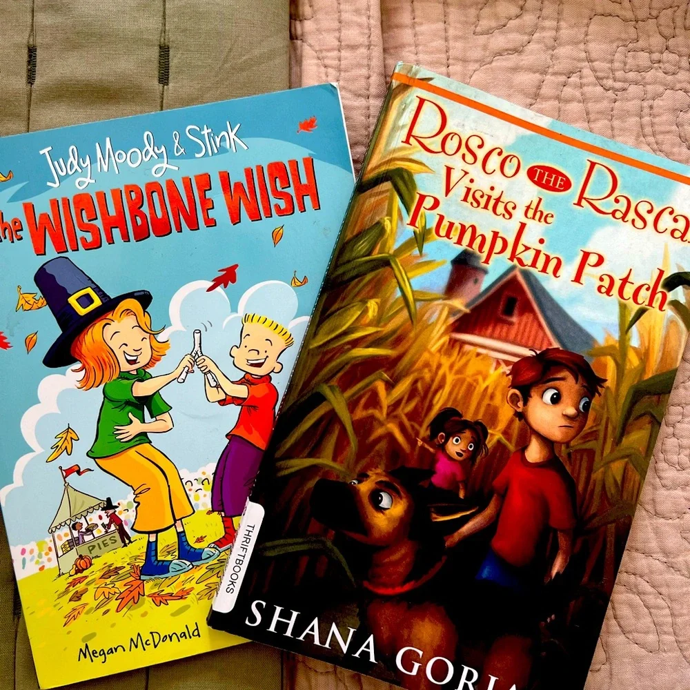 2 titles Judy Moody and Stink, The Wishbone Wish Rosco Visits the Pumpkin Patch by Shana Gorian UEC BUNDLE and SAVE
