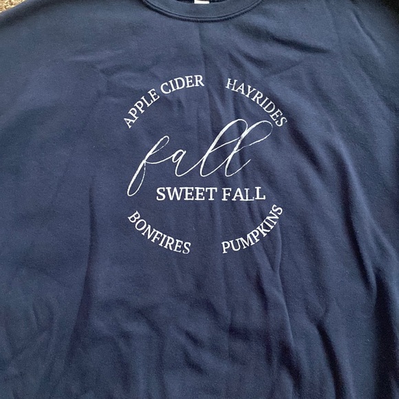 Small navy blue fall sayings crew neck sweater. Worn only a few times, great condition, lightweight but fleece lined, perfect for a cool fall day.