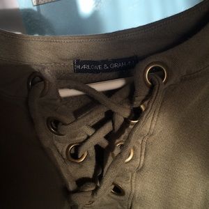 Cute olive green cropped sweatshirt with cute neck line , remember sweater season is right around the corner