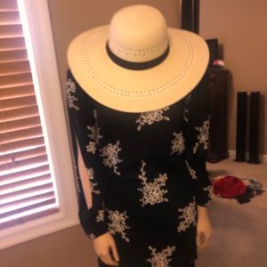 Can be worn as a dress or with leggings. Arms open down and the back crosses. Wore once. Hat not included