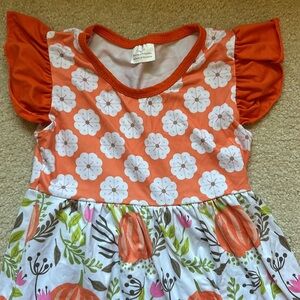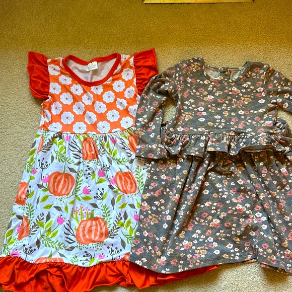 2 dresses perfect for fall. The pumpkin dress is adorable and super twirly! It was purchased from an online boutique. The other dress’s brand is Bonnie Jean.