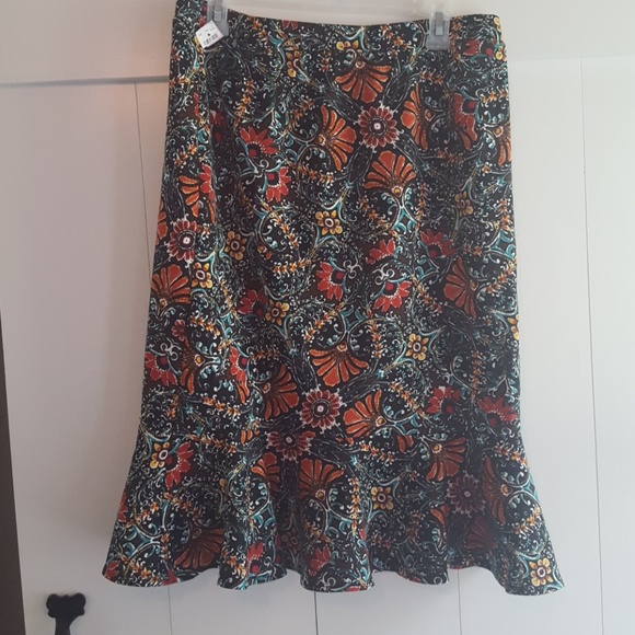 Perfect for the fall this midi flared skirt is a definite staple for the closet. See picture to for the beautiful ruffly flared bottom and color scheme