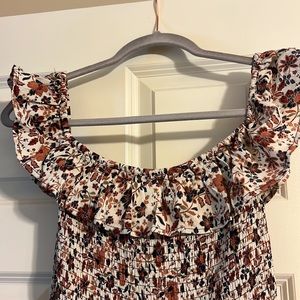 Worn once, amazing fall colors. Knee-high slit on left side, can be worn on or off the shoulders. Size medium, can fit size small