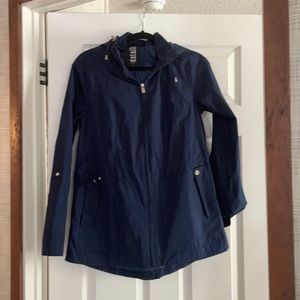 Slip on this casual yet classy jacket and feel confident going out on a damp day in style. Cinch at waist to accentuate waist or leave loose for a relaxed look. Extra cut out detail adds character to this staple.