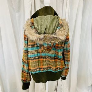 Short, fully lined fall jacket with hood. Vintage colors are perfect for fall. Has pockets