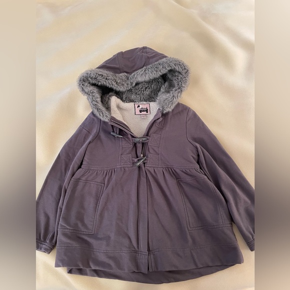 Excellent conditions, size, small juniors hoodie with fur and fleece lining. No pilling. Grayish purple in color. Sleeves are not full length.