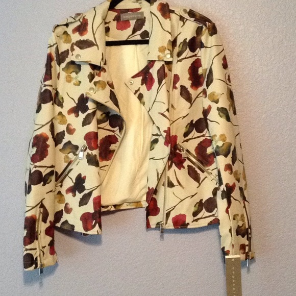 Looks awesome, light weight fall leaved jacket...really cute. Polyester and lined.