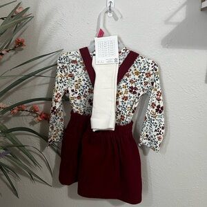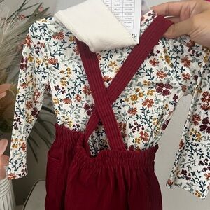 Corduroy feel overall dress . Perfect for the fall. Has cute matching panty hose and top that comes with it . Pockets included 18M