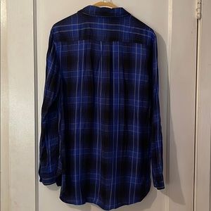 Gently worn, flannel plaid style shirt. Soft material. 1/2 button up style.