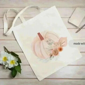 Fall pumpking recycled canvas tote bag