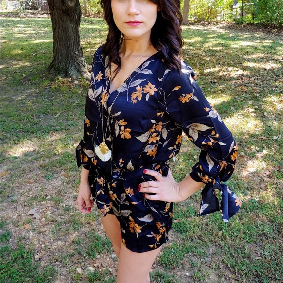 Super cute romper. Perfect for those warmer fall days. Has a tie around the body. It adds a perfect touch