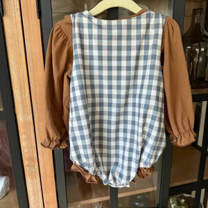 Fall smocked romper scarecrow embroidered gingham bubble toddler girl bows set