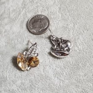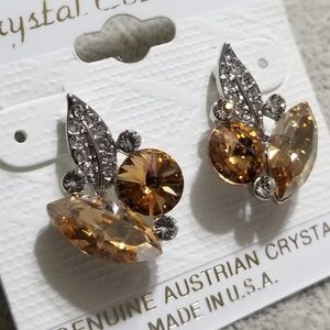 Platinum plated. Champaign Austrian crystal and clear Auden rhinestones. Leaf design. #1236. 5/8" x 3/4"