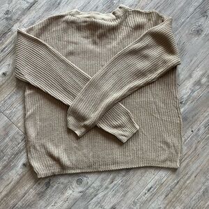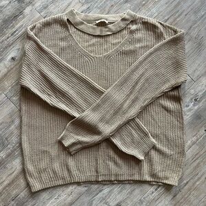 PLEASE READ FOR SIZE AVAILABILITY! Brown sweater with neck cut out detail, soft knit material, loose fit. Sizes available are small/medium (2) and medium/large (2)