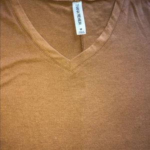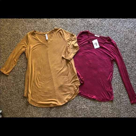 one mustard yellow 3/4 sleeve rayon spandex top size medium flowy and so comfy! Minimal piling