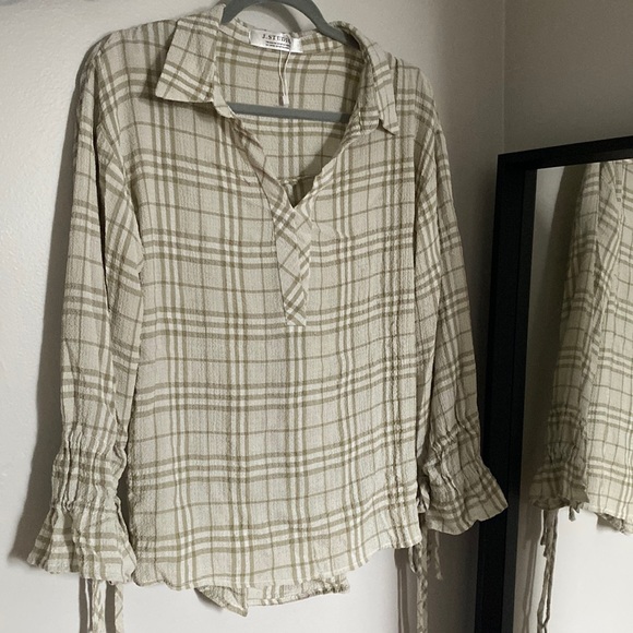 This super cute fall top has tie sleeves that give it the perfect pop of fun! Wear this long sleeve to work or out to dinner.