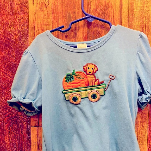 Cute little dog top with a pumpkin perfect for fall size 6-7