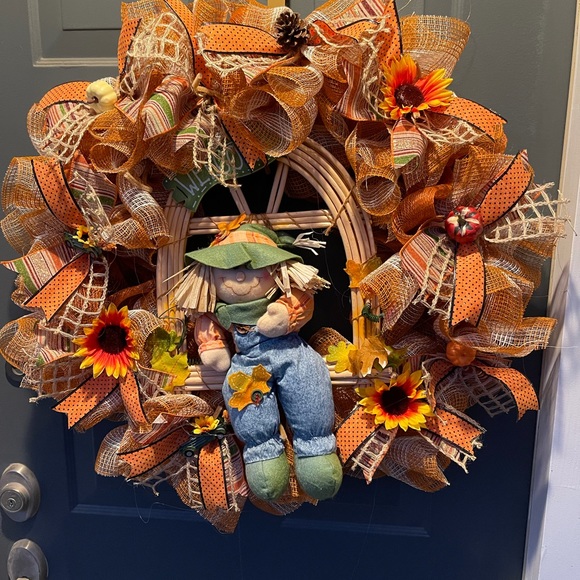 Grace your front door with this whimaical scarecrow wreath perfect for the fall months