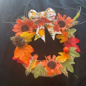 Orange &green leaves orange flowers floral stems beige$brown jute cute fall bow.