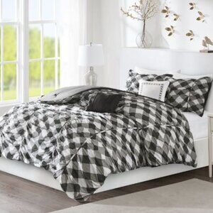 Fall/Winter "Caroline" Ruched Gingham Print Duvet Set with 2 Shams ~ Full/Queen