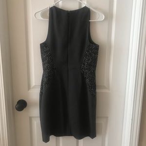 Perfect for work! Charcoal grey dress with black and white side detail (pictured). Zip-backed. Dress has some stretch.