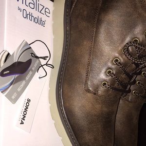 Brown boots with laces. Memory foam insoles, worn one time but too big for me.😕 They are soo comfortable!