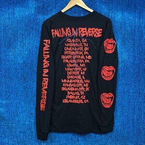 Falling in Reverse Live from the Unknown Tour Long Sleeve M approx measures 20 inches pit to pit 29 inches long Never worn firsthand overstock in great condition has an imperfection (crack sleeve graphic) on the graphic from the manufacturing process