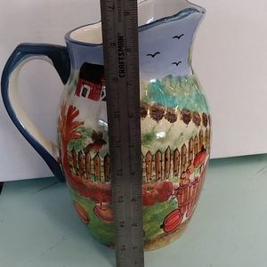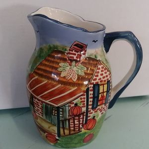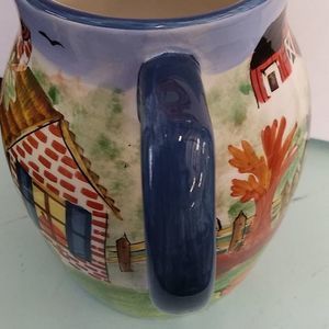 Beautiful Fall, WCL, hand painted pitcher. * I just noticed a white pinpoint dot by handle. Pic shown. Mouth is approx 5" from pour spout to handle, and 4.5" across.