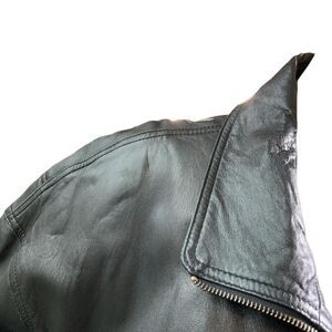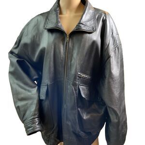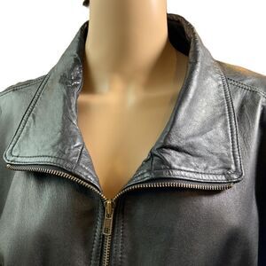 Falls Creek Black Leather Zip Front Bomber Jacket Size Extra Large Vintage Biker