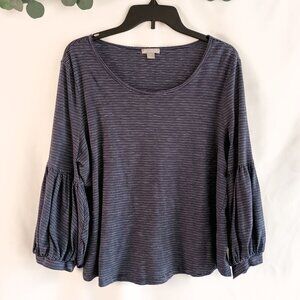 Falls Creek Blue Striped Bell Sleeve Top Women’s Large Scoop Neck Blouse