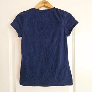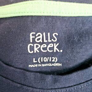 Falls Creek Girls Large 10/12 Navy Blue Tee with irridescent vinyl outline of a French bulldog and the words Pup Club. Machine washable cotton polyester blend. Very good pre-owned condition.