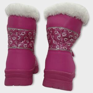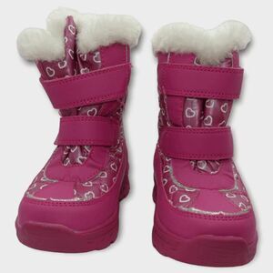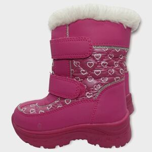 These hot pink boots from Falls Creek are perfect to help keep your little ones feet cozy and warm by offering water resistance and 3M Thinsulate sherpa insulation. Created with hook and loop closures for easy on and off. Designed in a hot pink with faux fur cuff trim and heart graphics.