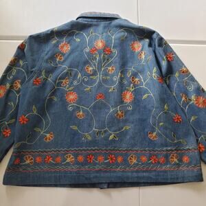 Falls Creek Jacket Women XL Blue Denim Embroidered Floral Button Front Boho Fall