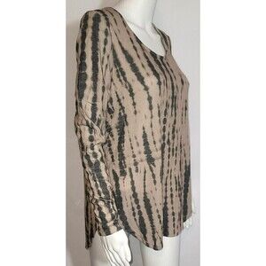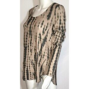 Cute, lightweight tan sweatshirt with black ink blots in vertical lines. Long sleeved and incredibly soft. Falls Creek, size S.
