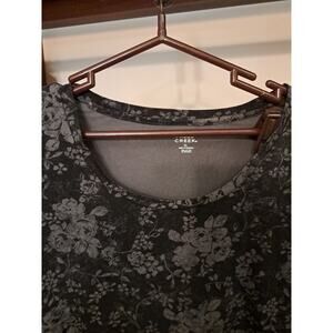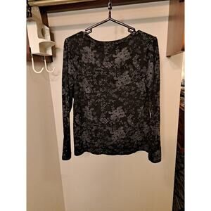 Falls Creek Long Sleeved Shirt Gray on Black Floral Design Ladies Size XL Cotton