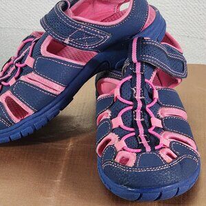 Falls Creek Navy Bright Pink Velcro Strap Closed Toe Bungee Jill Sandals Sz 2M