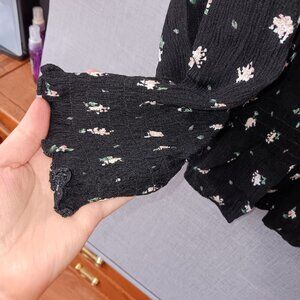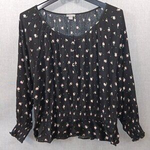 Up for sale is a beautiful Falls Creek women's black floral peasant blouse in size 3X. This top features a charming pink and white floral pattern with delicate ruffling on the sleeve openings. there is also a few accent buttons on the front. This is a rayon blouse so it is lighter weight and breathes. There is stretchy elastic on both the sleeve openings and the waist area to help give definition to your silhouette. The peasant style makes it a comfortable and stylish option for a variety of occasions. The blouse is perfect for pairing with jeans or shorts for a breezy, boho-inspired look. Or you could pair it with black slacks for a more put together look for the office. Either way, you'll look nice. Thanks for looking!