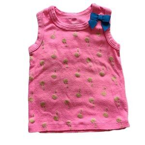 Adorable and soft Falls Creek pink with gold palm trees tank top with navy accent bow on left shoulder, size 18 Months.