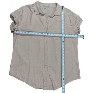 Falls Creek Size M Women Linen-Blend Shirt Beige Short-Sleeve Button-Up