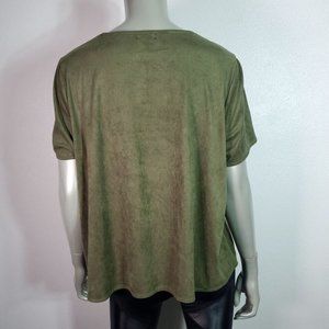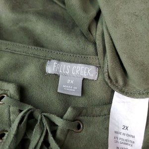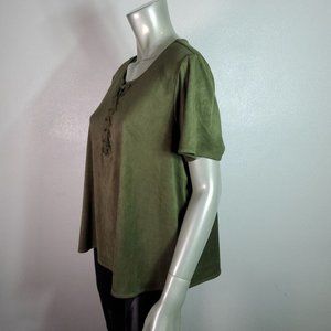 Falls Creek Top Plus Sz 2X Faux Suede Lace Up Cropped Stretch Short Sleeve Green Casual Scoop Neck
